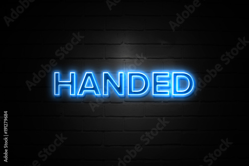 Handed neon Sign on brickwall
