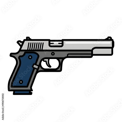 Handgun with blue grip and silver barrel side view illustration weapon firearm gun pistol