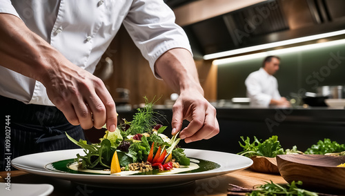 hand, chef, preparing, fresh, salad, eatery, kitchen, vegetable, meal, food, cooking, eatery, dinner, ingredient, plate, cookery, delicious, professional, preparation, organic, lifestyle, culinary, healthy, dining, service, nourishment, cook, freshness, healthy eating, green, receipe, dish, prepare, lunch, lettuce, epicure, tasty, vitamin, working, decorating, uniform, serve, presentation, occupation, catering, closeup, decoration