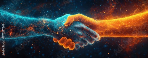 handshake, collaboration, energy, light, digital, art, cosmic, colours, oneness, partnership, connection, abstract, glowing, vibrant, teamwork, harmony, science, technology, creative, visual, design, concept, isolation, background, artist, illustration, dynamic, metaphor, support, influence, gesture, idea, spiritual, friendship, communication, reaching, exchange, positivity, interaction, future, optimism, transformation, emotion, synergy, hand, motion