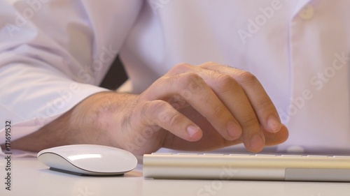 Hands typing on the keyboard. Male hands or man office worker typing on the keyboard