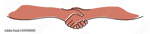 Handshake, agreement, introduction banner hand drawn with single line. Women or men shake hands. Png illustration isolated on transparent background