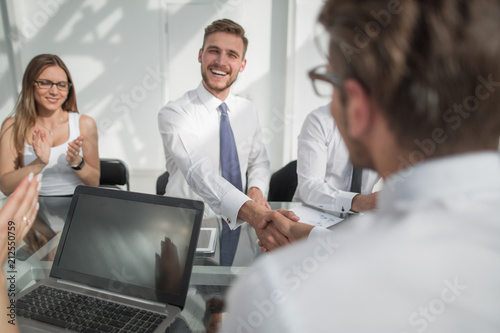 handshake of business people on a work Desk.