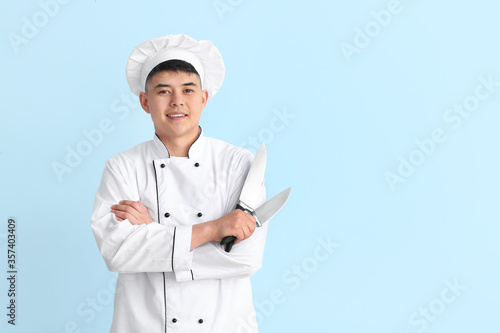 adult, asian, background, blue, business, chef, colours, cook, cooking, culinary, cut, delicious, dinner, dish, eat, food, gastronomy, epicure, guy, photogenic, hobby, job, kitchen, knife, knife, making, male, man, meal, occupation, people, person, portrait, preparing, profession, receipe, skill, taste, uniform, utensil, work, young