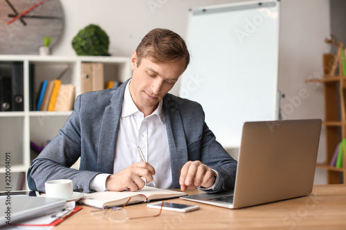 Handsome businessman working in office