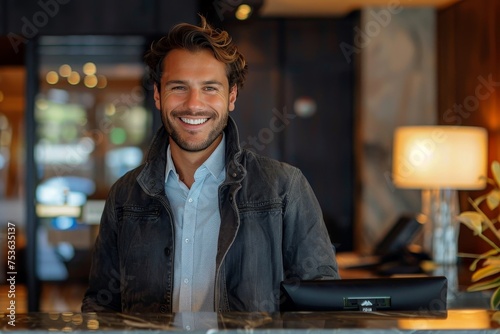 success, friendly, businessman, smiling, service, hotel, desk, man, professional, hospitality, approachable, stylish, happy, fashion, industry, travel, modern, accommodation, hotel lobby, comfortable, ease, entrepreneur, elegance, interior design, executive, casual attire, business travel, service industry, communication, welcoming, dapper