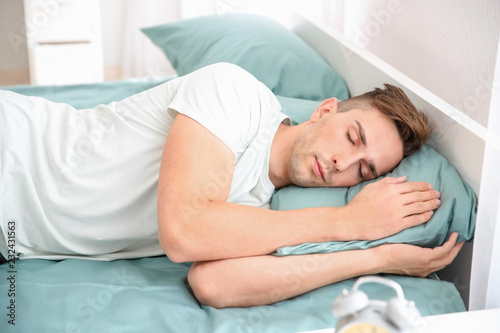 bed, bedding, bedchamber, bedtime, care, caucasian, comfort, comfortable, comfy, cotton, cosy, dream, photogenic, health, home, indoor, lifestyle, lying, male, man, material, morning, nightwear, pajama, peaceful, people, person, pillow, relax, relaxation, rest, room, sleep, sleeping, soft, textile, sleepy, young