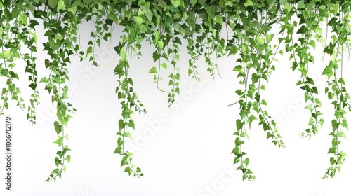 Hanging Plants. Green Leaves of Ivy Hanging Isolated on White Background
