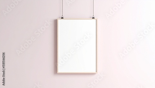 frame, poster, hanging, string, pastel, clean, minimal, white, interior, suspended, paper, blank, note, wall, empty, tags, design, photo, picture, clip, label, board, art, signs, message, card, gallery, business, wood, office, object