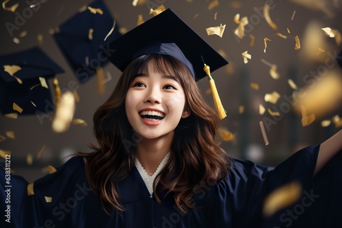 Happy Asia girl graduating student celebrating Graduation. School Graduation portrait photo