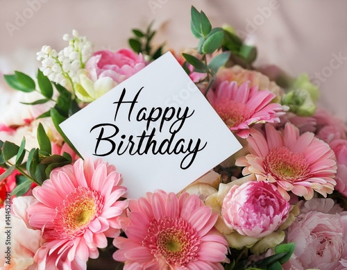 birthday, card, flower, bouquet, happy, celebration, blossom, gift, greeting, love, nature, spring, floral, colourful, vibrant, happy birthday, floral arrangement, decoration, text, message, beautiful, present, party, festive, anniversary, holiday, joy, fresh, flower petals, pink, romantic, bright, cheerful, elegant, seasonal, colorful flowers, floral pattern, wishes, event, greeting card, arrangement, rose, tulip, daisy, peony, happiness