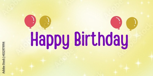 Happy Birthday greeting card with Yellow background and white sparkles and red and golden balloons