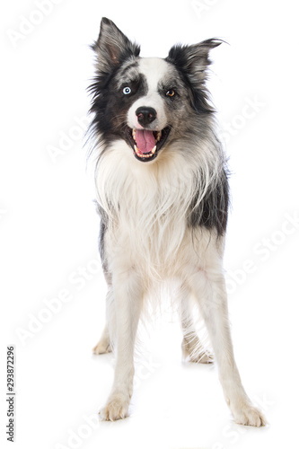 Happy border collie dog on white background
