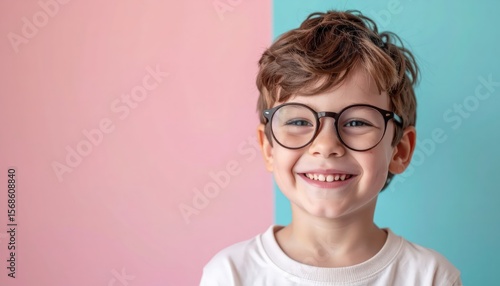boy, glasses, joy, happy, smile, colourful, background, showcase, childhood, innocence, laughter, nature, design, gleeful, childlike, imagery, expressive, carefree, wonder, atmosphere, lively, cheerful, adventure, partiality, excitement, emotion, youthful, liveliness, creative, radiant, portrait, vibrant, dynamic, delightful, scene, enthusiasm