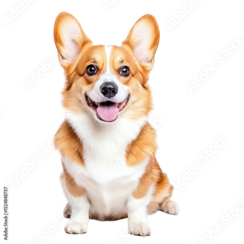 Happy Corgi Portrait: A charming and vibrant portrait of a corgi, with its distinctive features on full display, brings a touch of joy and warmth to any scene. isolated on white