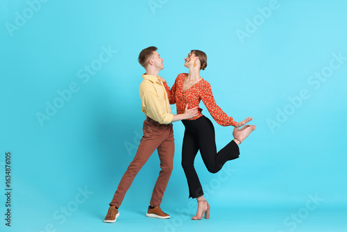 70s, 80s, adult, art, background, beautiful, blue, caucasian, clothes, club, concept, couple, dance, dancer, dancing, disco, entertainment, fashion, female, full-length, fun, girl, happy, hipster, hobby, leisure, lifestyle, light, look, love, male, man, modern, music, party, people, popular, portrait, retro, rythm, smiling, studio, style, stylish, trendy, vibe, vintage, woman