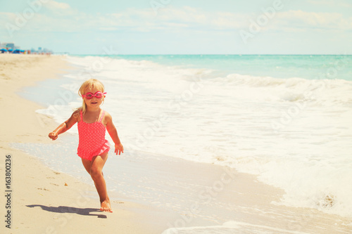 happy cute little girl running on beach