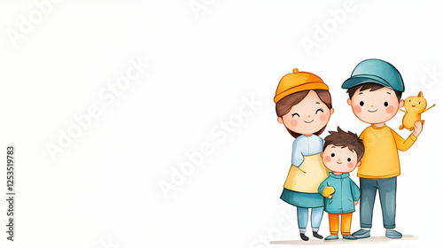 Happy family with son and baby toy illustration for family blogs, greeting cards, and social media