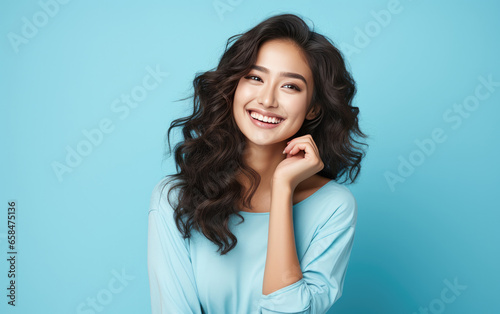 smiling, laughing, people, woman, female, young, beauty, hair, person, happy, pretty, face, portrait, fashion, model, attractive, skin, adult, smile, brunette, natural, cute, background, lady, make-up, expression, healthy, care, studio, looking, style, make-up, spa, happiness, cheerful, white, lifestyle, facial, curly, long, positive, 1, red, posing, generative, ai