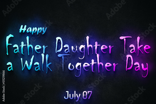 Happy Father Daughter Take a Walk Together Day, July 07. july Calendar on workplace neon Text Effect, Empty space for text