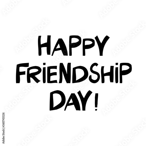 Happy friendship day. Cute hand drawn lettering in modern scandinavian style. Isolated on white background. Vector stock illustration.
