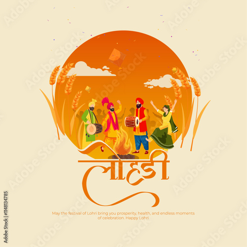 happy, festive, background, punjabi, indian, fire, culture, creative, celebration, party, concept, india, holiday, vector, couple, dance, harvest, people, illustration, woman, poster, flier, agriculture, drawing, colourful, festival, religion, balefire, tradition, traditional, cultural, drum, folk, greeting, 2024, greeting