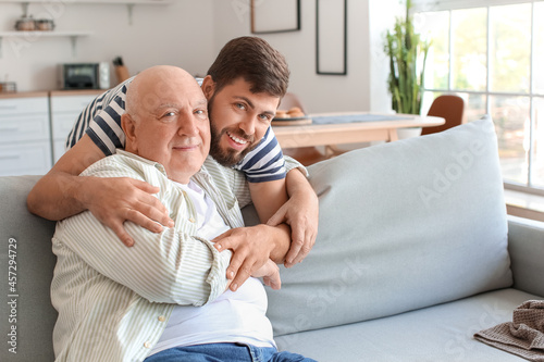 adult, bonding, care, caucasian, father, father, day, elderly, family, father, father, friendship, generation, happiness, happy, holiday, home, hugging, leisure, love, male, man, eltern, parenthood, people, person, portrait, relative, rest, senior, sitting, sofa, son, together, weekend