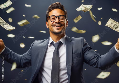 happy, man, suit, falling, dollar, savings, currency, commerce, invest, investment, economic, happiness, american, professional, banknote, boss, concept, businessman, free, profit, confident, joy, succeed, successful, expression, fortune, victory, entrepreneur, fly, wealth, success, financial, executive, cash, business, rich, people, money, corporate, person, finance