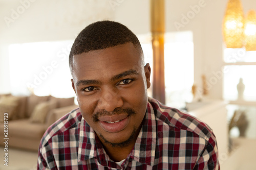 Happy man looking at camera in a comfortable home