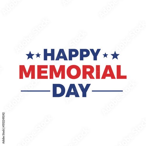 "Happy Memorial Day Typography Design – Patriotic Red, White, and Blue Text with Stars"