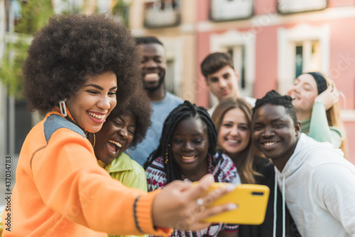 friends, selfie, smartphone, memory, moment, smile, street, using, contraption, man, woman, device, mobile phone, self-portrait, content, glad, having fun, delight, happy, laugh, together, model, lifestyle, group, people, town, friendship, cheerful, city, afro, coiffure, diverse, african american, black, multiracial, mobile phone, partner, young, outdoors, blurred background, blur