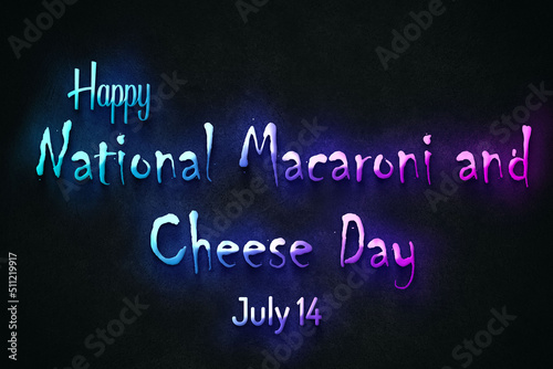 Happy National Macaroni and Cheese Day, July 14. july Calendar on workplace neon Text Effect, Empty space for text