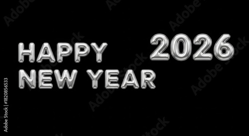 Happy new year 2026 silver metallic text