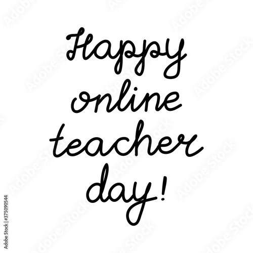Happy online teacher day. Education quote. hildish handwriting. Isolated on white background. Vector stock illustration.