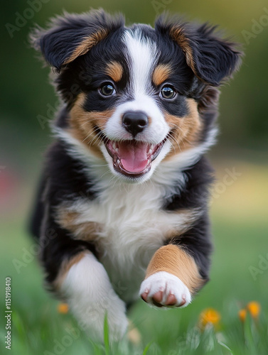 puppy, dog, grass, running, playful, happy, spring, nature, outdoors, field, flower, animal, pet, cute, joyful, furry, landscape, sunshine, excitement, vibrant, companionship, garden, breed, happiness, fun, movement, agility, tail, paw, bark, wildflower, scenery, bright, canino, enjoyment, youth, adventure, new year, eastern, prosperity, celebration, traditional