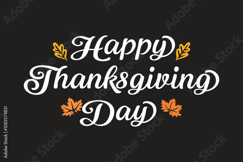 thanksgiving, thanksgiving, autumn, fall, leaf, maple leaf, holiday, celebration, festival, greeting, design, typography, text, font, script, calligraphy, black background, orange leaf, simple, elegant, minimalist, vector, graphic, illustration, card, poster, banner, print, digital, autumn leaf