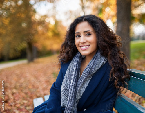Happy Woman's Autumn Portrait: Outdoor Headshot with Smiling Expression and Copyspace
