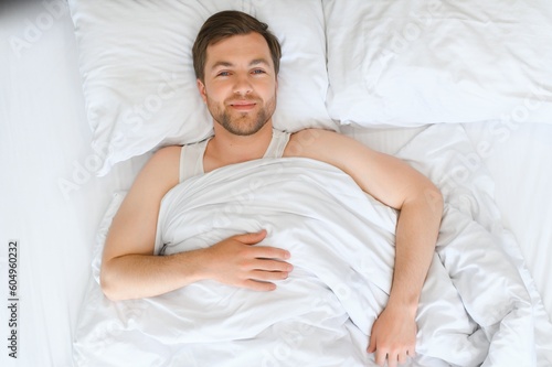 photogenic, bed, white, relaxation, morning, bedchamber, young, lying, awake, caucasian, wellness, relax, adult, male, person, indoor, happy, lifestyle, man, home, smile, healthy, health, bedtime, sexy, up, waking, portrait, boy, 1, beauty, rest, guy, hair, up high, sleepy, pajama, view, arousing, cheerful, leisure, resting, pillow, sleep, pretty, girl, tranquil, room, female