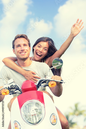 happy, couple, enjoying, scooter, ride, young, sky, cheerful, woman, arm, raised, around, screaming, vacation, man, love, driving, vehicle, carefree, male, female, summer, riding, drive, enjoyment, fun, excited, mouth, open, portrait, looking, cloud, transportation, moped, together, day, holiday, travel, happiness, lifestyle, leisure, outdoors, 2, people, 20s, adult, asian, caucasian, vertical