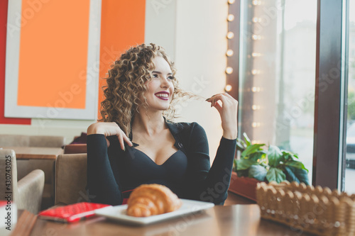 woman, eatery, hot drink, drink, cup, cappuccino, espresso, latte, cake, epicure, food, cafes, break, time, city, eating, beautiful, lunch, young, happy, french, european, croissant, dating, france, breakfast, meeting, pleasure, waiting, beret, cap, leisure, positive, healthy, lifestyle, attractive, model, red, make-up, curly, blond, fashion, female, cookery, tasty