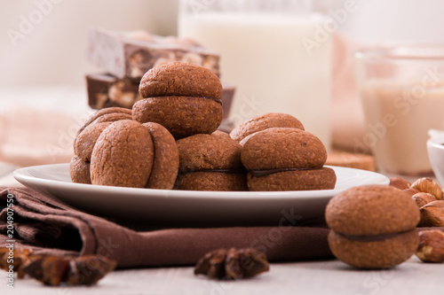 chocolate, cookie, biscuit, hazelnut, cappuccino, milk, hot drink, macchiato, spice, fruit, anise, food, sweet, shortbread, sandwich, cinnamon, truffle, cocoa, brown, dark, ball, candy, filling, cream, confectionery, dessert, pastry, snack, delicious, tasty, epicure, meal, homemade, portion, slice, napkin, receipe, cookery, culinary, fresh, organic, gastronomy, nourishment, alimentary, ingredient, baked, bakery, shortcake, italian