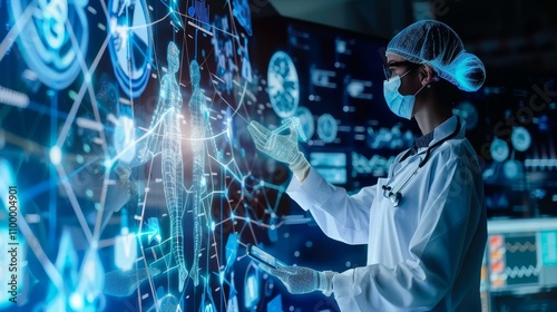 Health care and medical technology services concept. Medical worker using data virtual with health care icons, medical technology background, health insurance business.Health Insurance, telemedicine