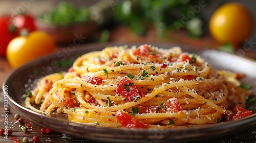 Healthy pasta with tomato sauce parmesan basil