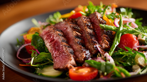 food, meat, beef, steak, meal, dinner, salad, plate, grilled, vegetable, dish, tomatoes, cookery, eatery, epicure, lunch, green, delicious, bar-b-q, roasted, cooked, white, grill, vegetable