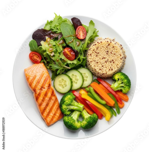 salmon, salad, bright, healthy, lighting, wellness, presentation, balanced, quality, dining, flavorful, broccoli, fitness, ingredient, seasonal, greener, vegetable, protein, carb, tomatoes, lifestyle, cucumber, chef, appetising, grilled, colourful, receipe, nourishment, lunch