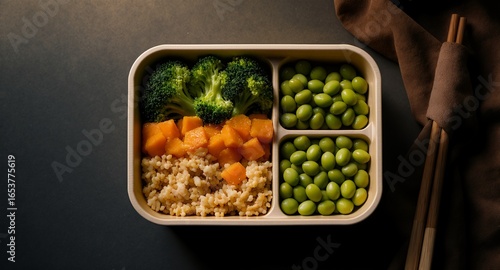 Healthy Vegetarian Meal Prep Quinoa, Broccoli, Butternut Squash Edamame