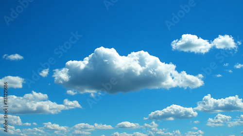 heart shaped cloud floats in bright blue sky, surrounded by fluffy white clouds, creating serene and uplifting atmosphere