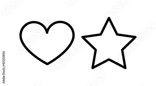 Heart star black white. Vector linear illustration. Isolated icons