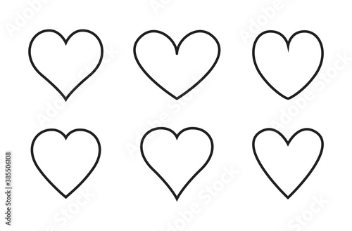 Heart thin line icons set isolated on white background. Modern collection of different linear hearts for love icon, love logo and Valentine's day. Creative art concept, outline heart vector