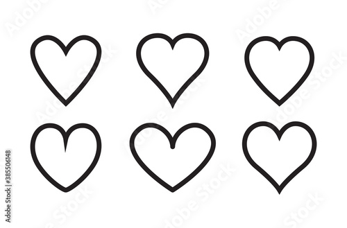 Heart thin line icons set isolated on white background. Modern collection of different linear hearts for love icon, love logo and Valentine's day. Creative art concept, outline heart vector